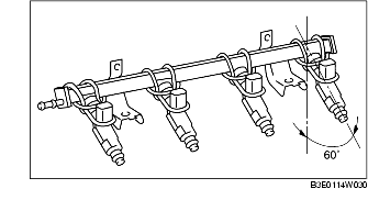 3. Rimuovere gli iniettori insieme al condotto di distribuzione. (Vedere RIMOZIONE/INSTALLAZIONE INIETTORE CARBURANTE ).